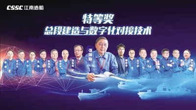 特等奖“总段建造与数字化对接技术”,颠覆了传统“人拉肩扛”的对接方法,解决了大尺度、大群组定位难题,实现了巨型总段以分钟计的高精度对接。这一巨系统工程的背后,江南造船与上海交通大学、天津大学的专家联合攻关了4年有余,应用了低应力制造技术、高精度测量技术和高精度数据交融技术,数据背后有一系列理论与算法做支撑。