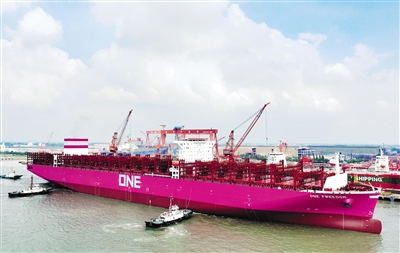 公告称,尽管在船舶建造期间面临各种挑战,但是,扬子江仍然能够按期甚至提前交付船舶。截至11月13日,扬子江船业已成功交船60艘,有望完成其全年交船70艘的任务目标。其中,第三季度以来的项目亮点多多。该公司为船东Seaspan公司建造的6艘11800TEU集装箱船顺利交付,实现完美收官;为Seaspan公司建造的7艘15000TEU集装箱船系列船首制船“ONE FREEDOM”号(见图)于2022年10月12日成功交付。该船于2021年9月16日正式点火开工建造,提前100余天交付,这是扬子江船业历史上建成交付的最大箱位的集装箱船。