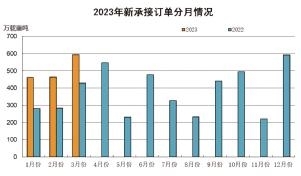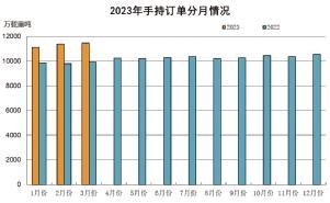 1~3月,全国造船完工917万载重吨,同比下降4.6%;承接新船订单1518万载重吨,同比增长53%;3月底,手持船舶订单11452万载重吨,同比增长15.6%。