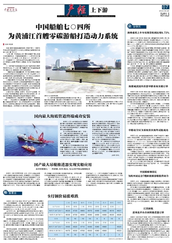 日前,搭载中国船舶集团有限公司旗下第七〇四研究所自主研发新能源动力系统的上海黄浦江首艘纯电动游船“上海久事”号交付。