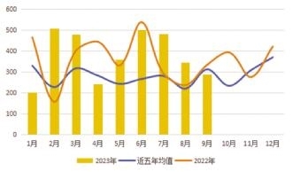 新船订单量增长6.5%,完工交付量增长14.2%,手持订单量增长10.5%。1~9月,世界成交新船订单3401万修正总吨(CGT),同比增加6.5%,比近5年同期成交均值(2018~2022年)高38%。以载重吨(DWT)计,1~9月,世界成交新船订单8368万DWT,同比增长38.2%,增幅继续扩大。1~9月,新船完工交付2454万CGT,累积同比增加14.2%。截至9月底,世界手持订单1.15亿CGT,同比增长10.5%。