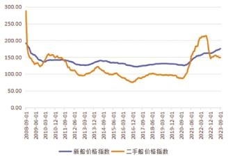 新造船价格创2009年以来新高。9月,克拉克森新造船价格指数报收175.37点,同比增长8.3%,年内连续8个月上涨,再创2009年以来的新高。9月,克拉克森二手船价格指数收报148.9点,环比增长0.1%,同比下降25.9%。新造船与二手船价格的逆向而行一定程度上代表了新造船与航运两个市场的供需关系。