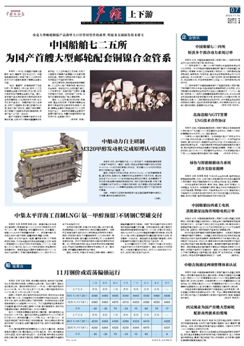 本报讯 近日,在中国船级社(CCS)的见证下,中国船舶集团有限公司旗下中船动力(集团)有限公司自主研制的甲醇双燃料发动机M320DM-PFI成功完成原理认可试验,标志着M320系列发动机低碳动力研制迈出了重要一步。