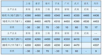 本报讯 记者 王进 报道 钢材需求有韧性,库存有下降预期,加上宏观政策利好刺激,近期钢价止跌反弹。在此行情下,船板价格也略有上涨。据我的钢铁网统计,11月8日,10毫米船板现货均价4453元/吨,比10月25日上涨了17元/吨;20毫米船板现货均价4337元/吨,比10月25日上涨了9元/吨。