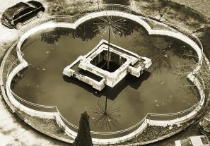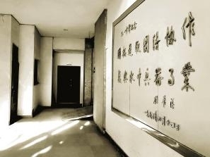 进门的院子前是一座梅花形的喷泉,每到过年过节,喷泉就会开启,前侧飘扬着的国旗也显得格外鲜艳,让经过的人肃然起敬。一条人车两用的大道直通大楼门庭,简洁大方的水磨石地面是当时十分流行的装修用材。铁质边框的玻璃大门替代了原来常用的木制边框,不但增加了耐久度,而且更显档次。一楼大厅面积不算大,结构设计布局现在看起来略显局促,但大楼中堂极具艺术张力的旋转楼梯成为大厅的亮点,从一楼直通二楼,每次走过都会有一种透过时空再次见到她芳华入昔的错觉。大厅中央刘华清将军为七一〇所题写的“开拓进取、团结协作、振兴水中兵器事业”的大字栗然在目,数十年如一日的激励着七一〇人奋勇向前。如果说大楼的外观是代表着七一〇所的形,那刘华清将军的题字便是给大楼注入了魂。