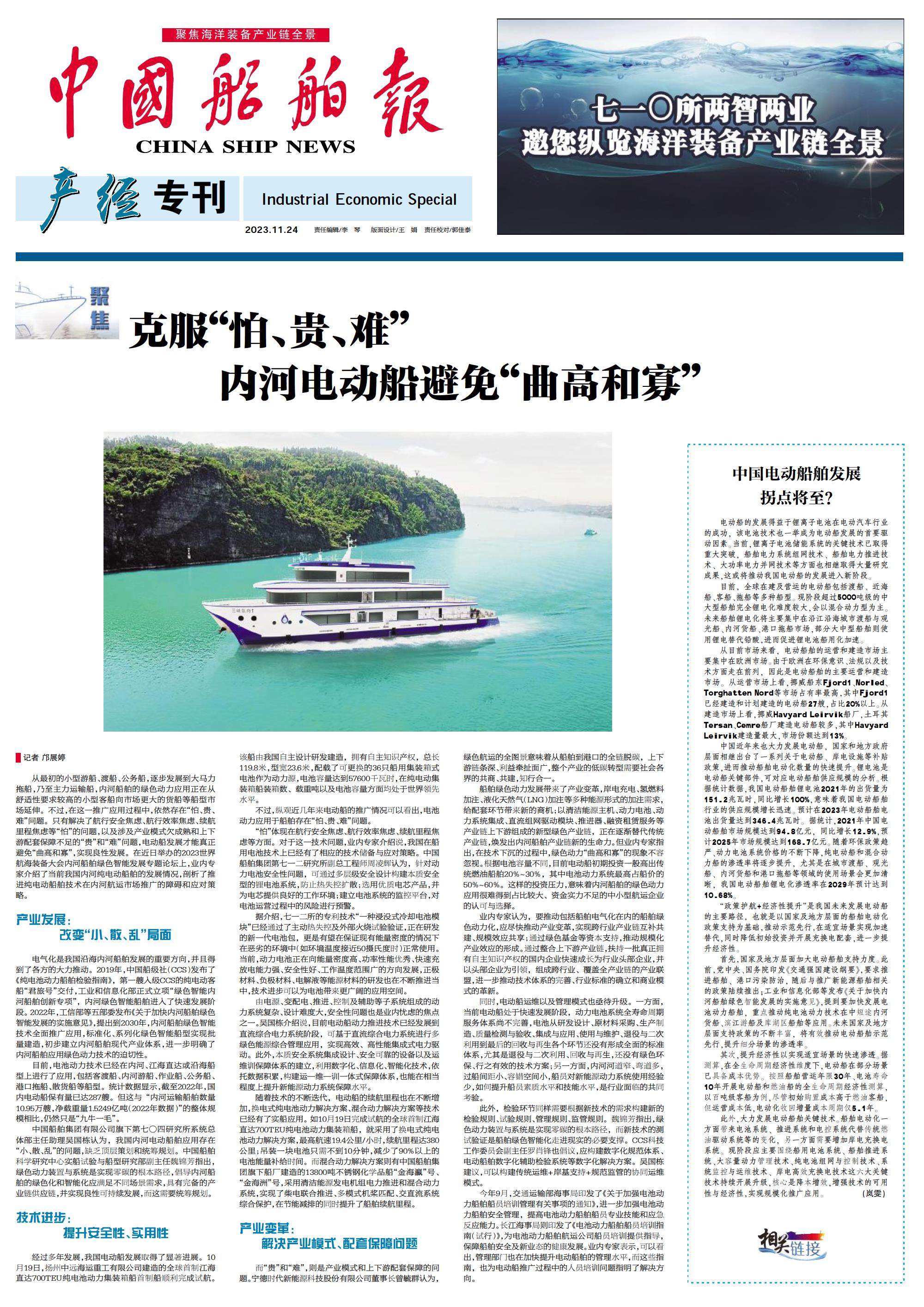 克服“怕、贵、难” 内河电动船避免“曲高和寡”