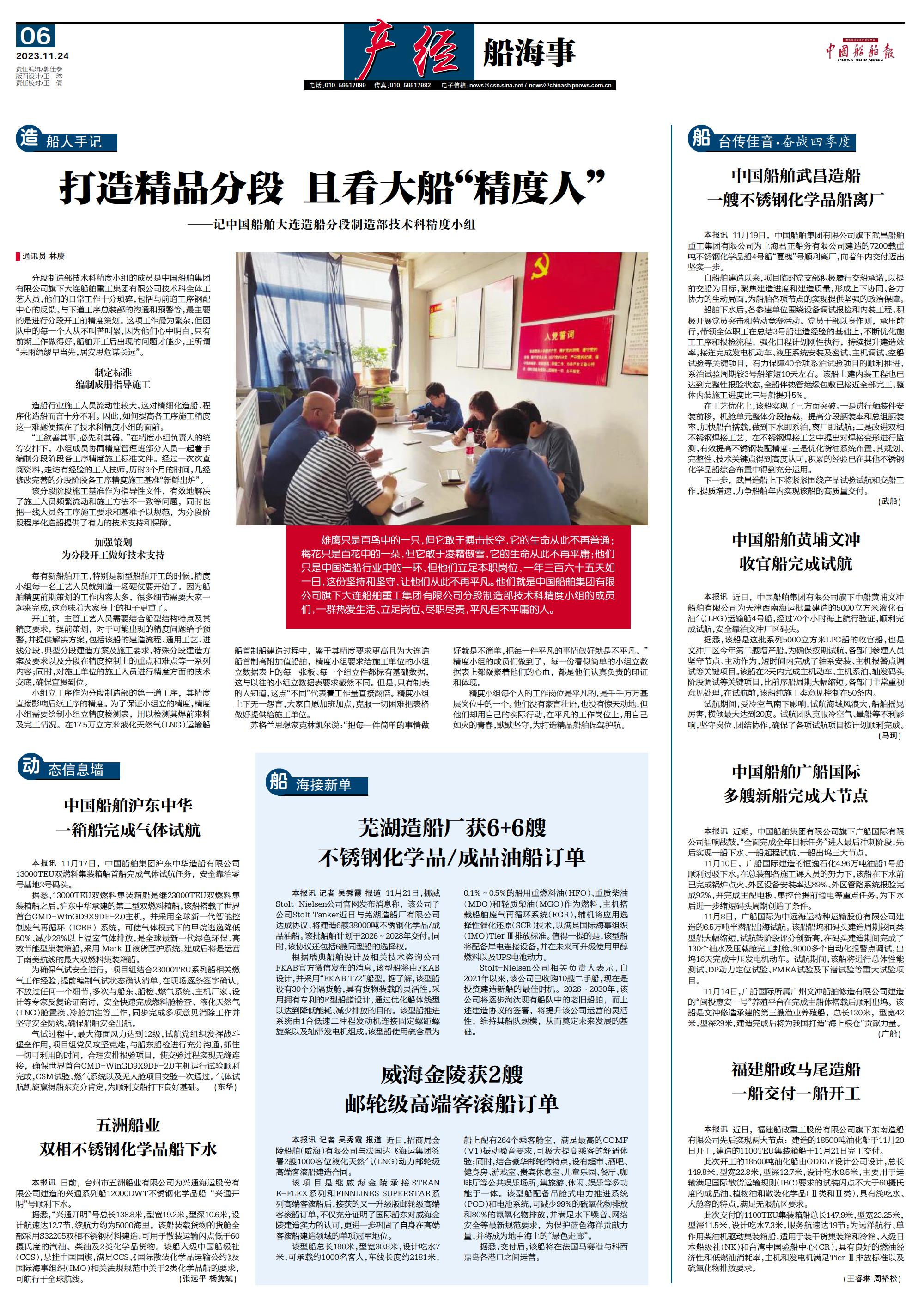 打造精品分段 且看大船“精度人”