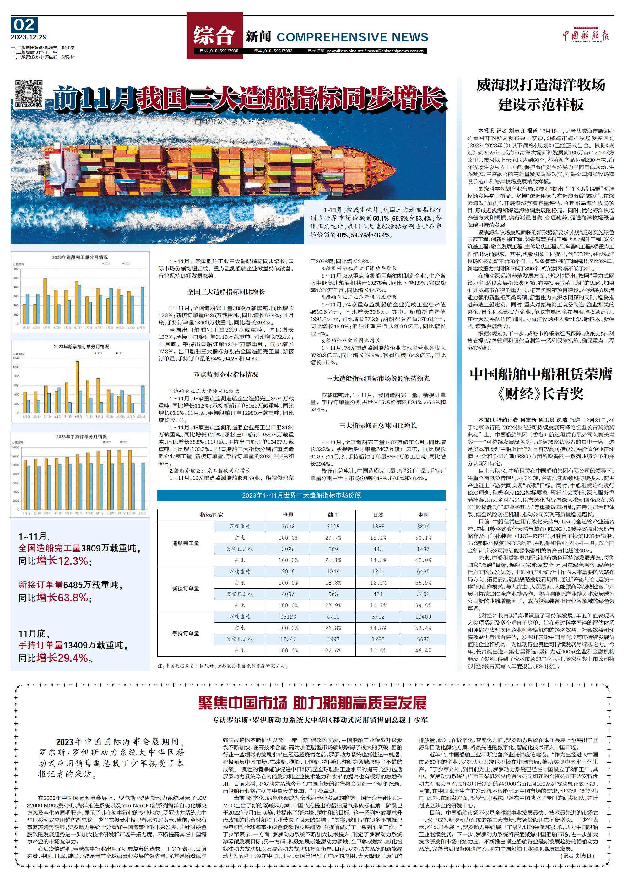 前11月我国三大造船指标同步增长