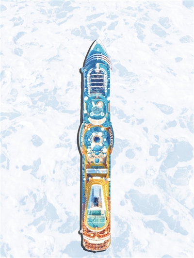 国产首艘大型邮轮总吨位13.55万吨,总长323.6米,型宽37.2米,设计吃水8.26米,最高高度72.2米。全船搭载107个系统、55000个设备,包含2500万个零部件,完工敷设4750公里电缆、365公里管系、120公里风管;设有客房2125间,可容纳乘客5246人,配置了高达16层、面积达4万平方米的生活娱乐公共区域,被誉为“海上现代化城市”。