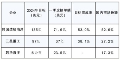 表1 2024年一季度韩国三大造船集团接单情况 (数据来源:韩国产业通商资源部)