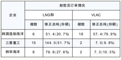 1~3月,全球29艘LNG运输船及20艘超大型液氨运输船的新船订单均被韩国三大船企包揽。