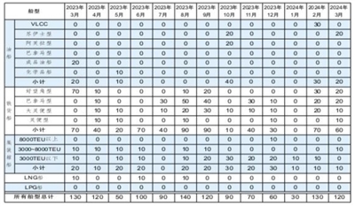 2023年3月~2024年3月世界主要船型拆解量 单位:万载重吨