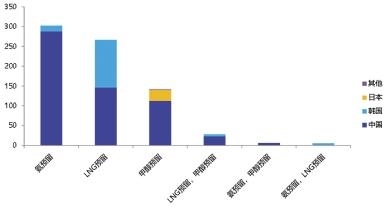 日本方面,日本政府积极推出绿色船舶战略规划,重点研发氢、氨等可再生燃料,以求通过抢占绿色船舶市场赶超中韩,振兴本国造船业。日本政府出台《零排放国际航运路线图》,重点展示了4个新型“零排放生态船舶”设计概念,即氢燃料船、氨燃料船、碳捕集与封存和超高效液化天然气(LNG)燃料船。日本经济产业省发布《2050碳中和绿色增长战略》,提出到2050年将现有船用传统燃料全部转化为氢、氨、LNG等。