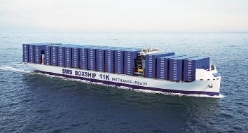 据悉,本次签约的甲醇燃料READY 11000TEU大型集装箱船是由外高桥造船自主研发设计、为客户量身定制的新一代绿色环保型大型箱船,在常规燃料动力双岛设计的基础上,新增预留了甲醇燃料动力系统,将显著降低船东后续进行绿色燃料改装的成本。该型船配置了脱硫塔以及挡风墙等多个脱硫、降碳、节能和减阻装置,快速性得到极大优化,这将大幅降低油耗,减少碳排放,降低运营成本。