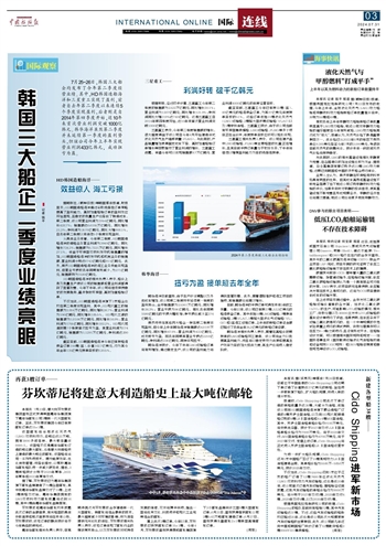 HD韩国造船海洋的相关负责人表示,船价上涨及批量生产使该公司的销售额和营业利润都得到了显著改善。今年下半年,该公司将继续保持稳定的发展趋势,重点争抢环保型、高附加值船舶订单。