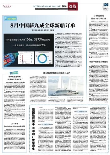 截至今年8月末,日本船企手持订单652艘、1420.4444万修正总吨,可满足未来3年以上的生产需求。此外,当月日本船企完工交付出口船舶15艘、29.5148万修正总吨。