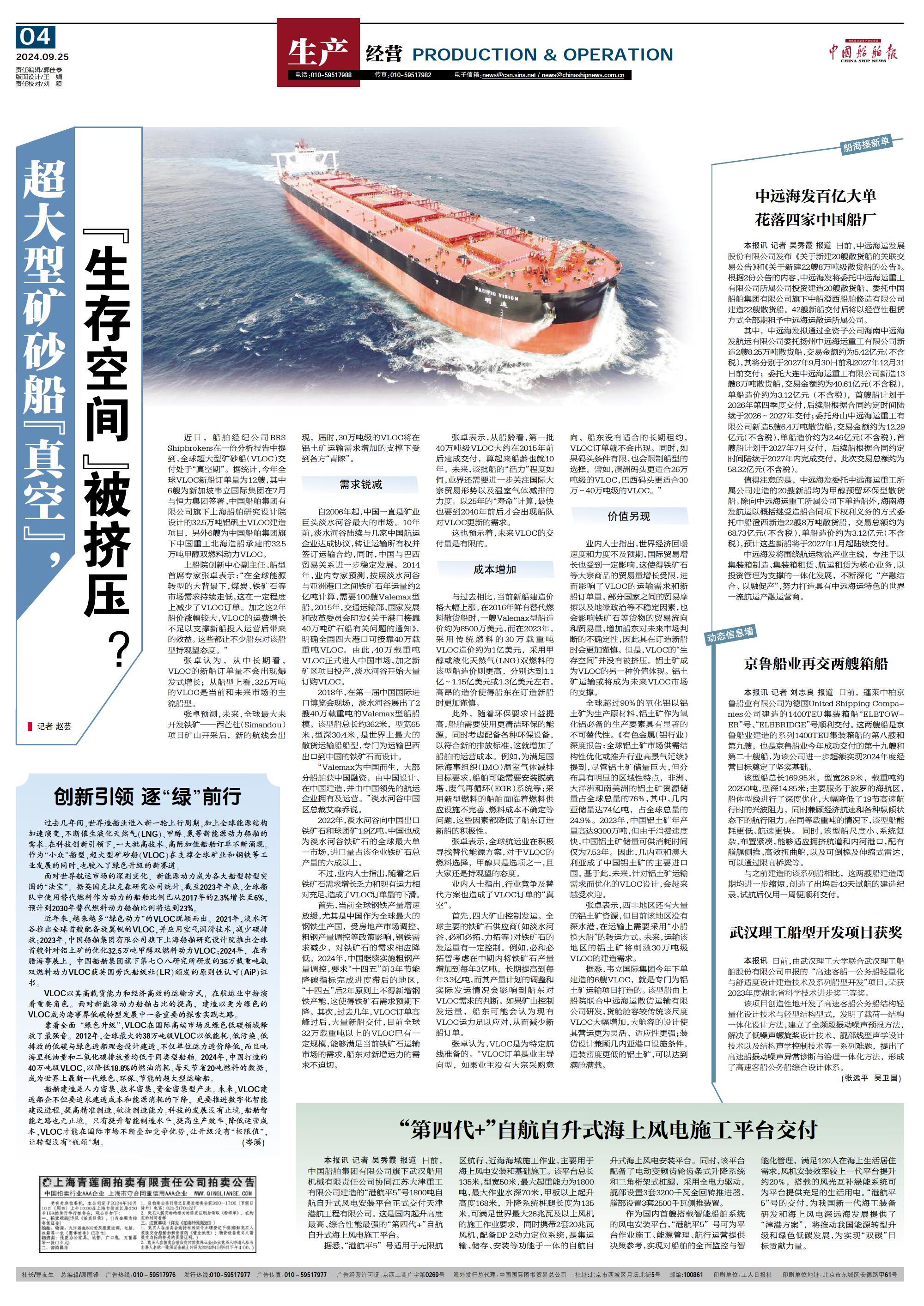 中远海发百亿大单花落四家中国船厂