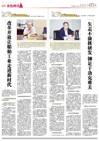 当然,在整个发展过程中,我们也在不断地根据需要进行改造。从时间上看,我们是“七五”期间改造“八五”受益,“八五”期间改造“九五”受益,每一个五年计划进行改造,后面的马上就受益了。这是因为我们的研究设施跟上了,在研发方面始终走在前面,这样一来就发展得比较快。这一点我也是深有体会的。这得益于改革开放以后,我们有了自己的研发能力,具备自我发展的能力。如果没有这方面的能力,我们提出来的军品为主、民船及多元经营这三大业务板块不一定能得到这么快的发展。