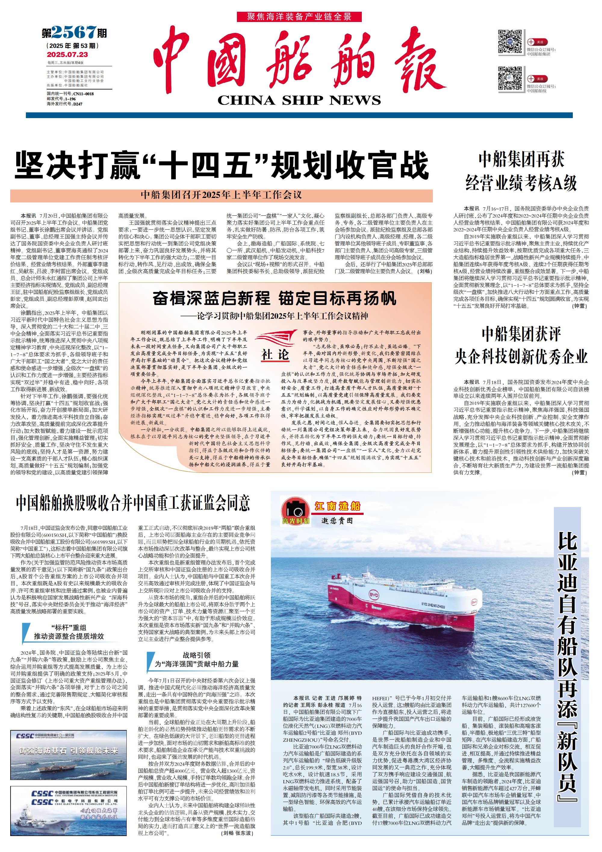 中船集团获评央企科技创新优秀企业