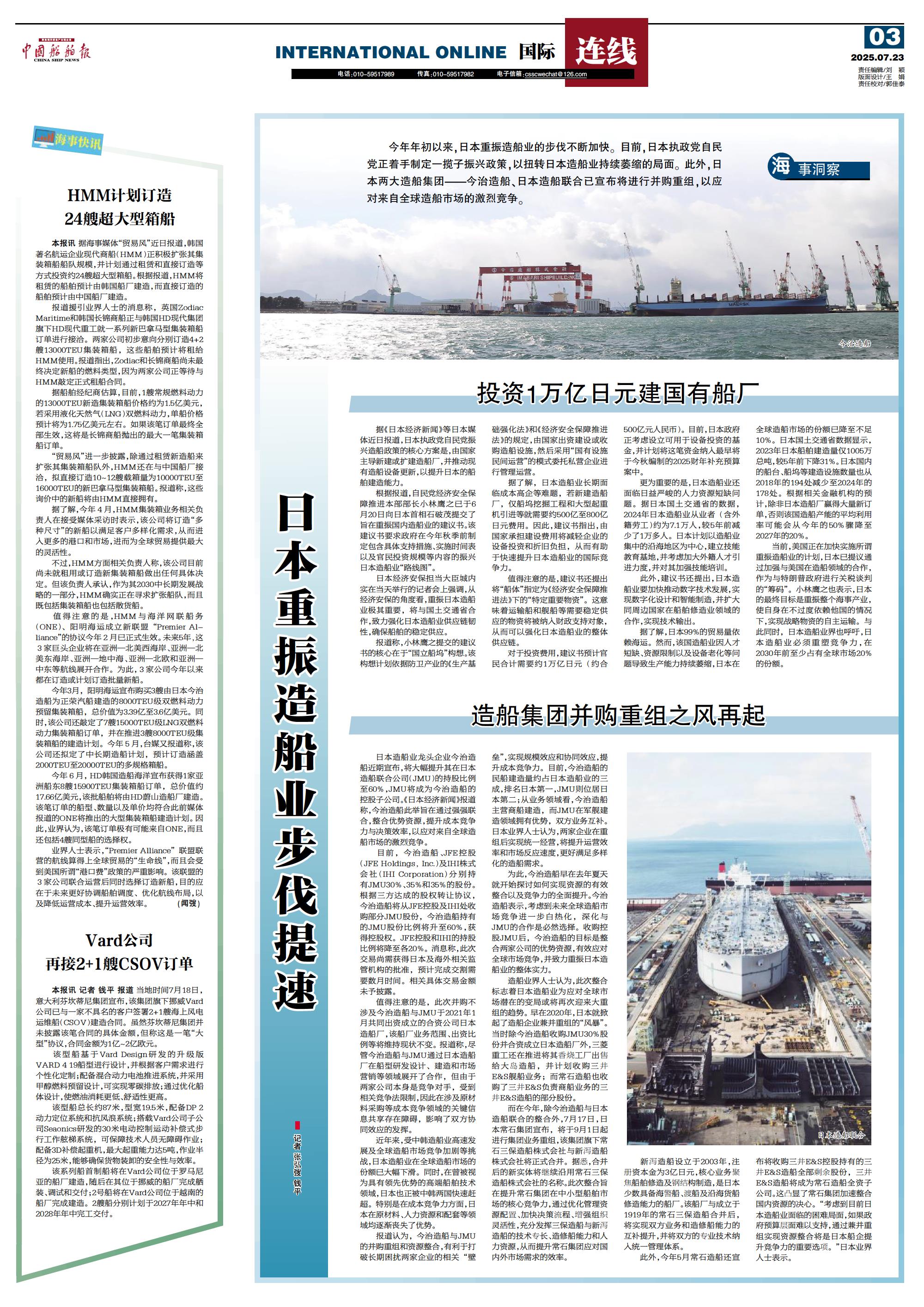日本重振造船业步伐提速