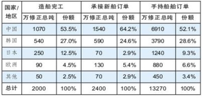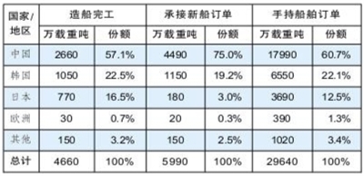 2024年1~6月世界主要造船国家和地区三大指标
