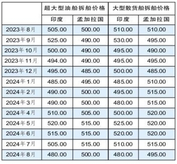 2023年8月~2024年8月印度和孟加拉国拆船价格