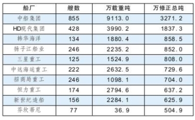2025年11月底世界十大造船集团手持订单情况