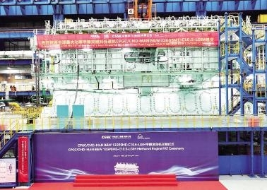 本报讯 记者 刘志良 报道 日前,中国船舶集团有限公司旗下中船动力(集团)有限公司与曼恩能源方案公司(MAN-ES)联合举办的CPGC/CMD-MAN B&W 12G95ME-C10.5-LGIM-EGRTC甲醇发动机工厂验收测试(FAT)交验仪式,在中船动力所属上海中船三井造船柴油机有限公司举行。