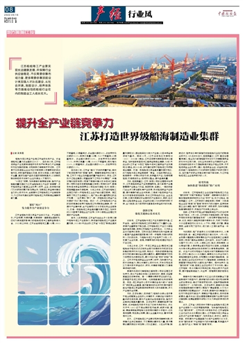 其中,从政策层面,江苏省先后出台多个政策以提升船舶与海工产业竞争力,持续推动船舶海工产业高质量发展。2021年8月出台的《江苏省“十四五”制造业高质量发展规划》,提出培育壮大新兴产业链,以海洋装备等领域为重点;同年12月,《江苏沿海地区发展规划(2021~2025年)》提出,江苏沿海要发展新型海洋工程装备,加快培育新型海洋工程装备制造业集群;今年3月出台的《江苏省“十四五”船舶与海洋工程装备产业发展规划》提出,到2025年,率先建成世界级船舶海工先进制造业集群,打造一批船舶海工装备高质量发展示范区,成为船舶与海工装备制造第一强省。这些政策的出台,就是要进一步强化项目引领,扶持重点产业;加速规模培育,打造载体平台;促进两化整合,提升品牌质量。