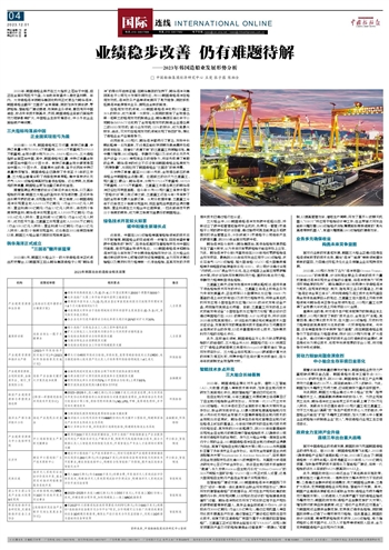 2023年,韩国造船业虽然在三大指标上落后于中国,但正在全面实现扭亏为盈,今后数年有望步入稳定盈利期。年内,大宇造船海洋被韩华集团收购并正式更名为韩华海洋,韩国造船业翻开“三国志”全新篇章,同时加快发展低碳、零碳船舶,智能船厂建设提速,布局新业务领域,意图甩开中国追击,抢占未来技术制高点。然而,韩国造船业目前仍面临劳动力短缺影响扩大、中型船企生存环境恶化、中小外包企业面临破产等问题。