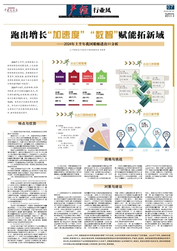 2024年上半年,我国船舶对外贸易高速增长取得了非凡业绩,为全年实现更大增长目标奠定了坚实基础。2024年下半年,地缘政治紧张局势、贸易保护主义、海运价格波动等,导致我国船舶贸易面临的外部环境更具复杂性、严峻性、挑战性。虽然船舶贸易发展面临的形势不容乐观,但在国家相关产业政策措施指导和大力支持下,伴随着我国船舶工业加快数字化、智能化、高端化转型升级的步伐,相信我国船舶对外贸易必将在高质量发展道路上巩固优势、稳中求进、再铸辉煌。