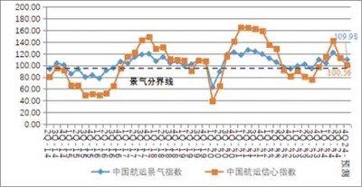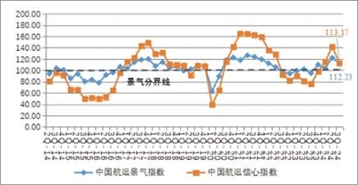 中国航运景气调查结果显示,第四季度,中国航运景气指数预计为109.98点,较本季度下降2.26点,进入微景气区间;中国航运信心指数预计为100.56点,较本季度下降12.61点,跌入微景气区间。总体来看,预计第四季度所有类型航运企业的景气指数和信心指数均出现不同程度的下滑,但依然处于景气区间,市场总体保持稳定。