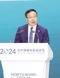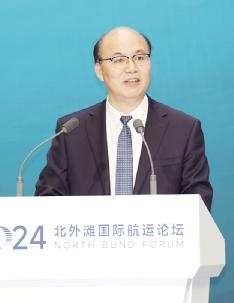 上海交通大学常务副校长奚立峰强调航运业数字化与智能化转型的重要性,并展示上海交通大学在航运领域的创新成果与贡献,期望通过论坛促进交流合作,共同推动航运业高质量发展。