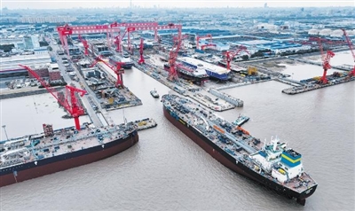 本报讯 特约记者 何宝新 报道 年终岁末,中国船舶集团有限公司旗下外高桥造船的码头船坞呈现出热火朝天的繁忙景象。12月2日至7日,短短的6天时间,该公司相继完成新船命名、出坞、入坞和试航等8个生产节点,向着全面超额完成年度生产经营目标发起“总攻”。