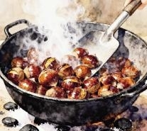 梧桐叶刚把街道铺成褐黄,桂花香就漫过了巷口,风里裹着三分凉、七分甜,恰好撞进那辆糖炒栗子推车的热气里。铁砂在黑锅里翻涌,滋滋地裹着栗子的焦香往上冒,阿姨用长勺一搅,褐红色的栗子便在砂粒间翻滚。这熟悉的气息像一把钥匙,轻轻一转便打开了回忆匣子,那年的秋山、板栗树,还有满筐的收获与欢笑,忽然就清晰地浮了上来。