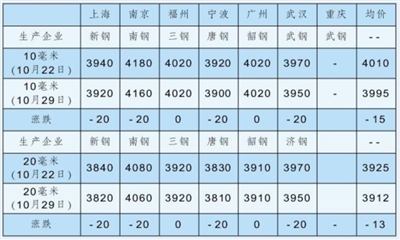 本报讯 记者 李琴 报道 在宏观预期持续升温、钢材市场基本面呈改善态势的背景下,船板现货价格降幅收窄。据我的钢铁网统计,10月29日,10毫米船板现货均价为3995元/吨,较一周前下跌15元/吨;20毫米船板现货均价为3912元/吨,较一周前下跌13元/吨。